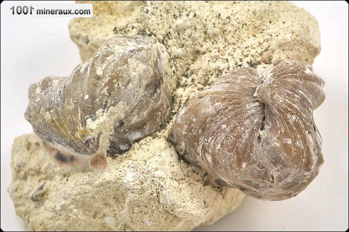 Les Rhynchonelles appartiennent aux Brachiopodes articulés et à la famille des Rhynchonellidae. Commissures en dent de scie, côtes très marquées et sommets fortement recourbés. Les rhynchonelles se trouvaient sur le sol marin. Les Rhynconelles ont vécu de l'Ordovicien (-470 Ma) au Crétacé supérieur (-65 Ma).