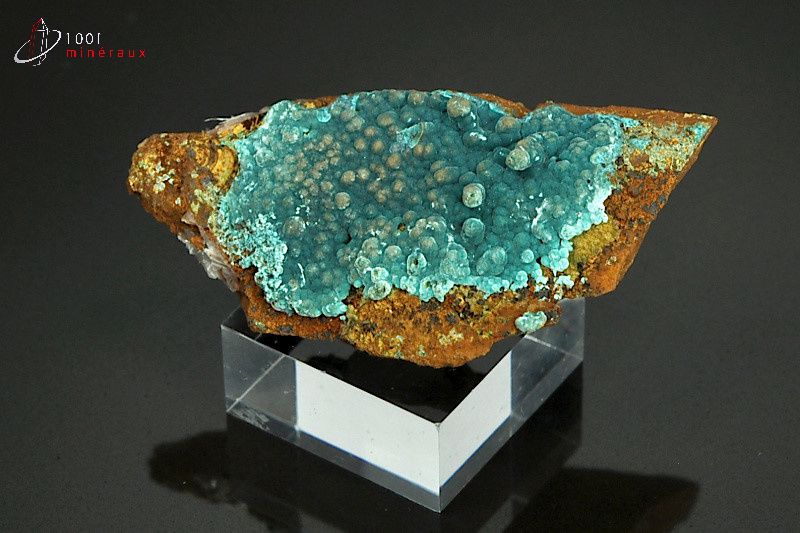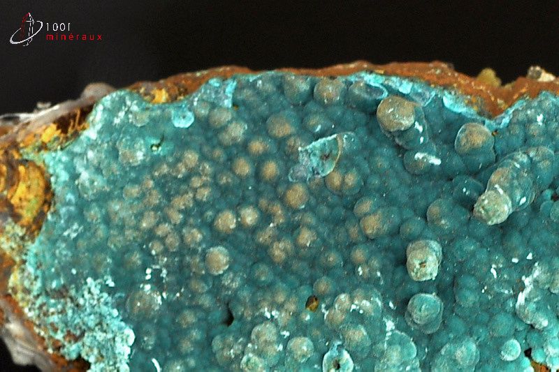 Spécimen de Rosasite bleu-vert présentant une cristallisation mamelonnée.