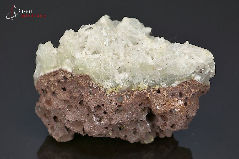 Magnifique spécimen de Scolecite constitué de nombreux cristaux aciculaires blancs rayonnants.