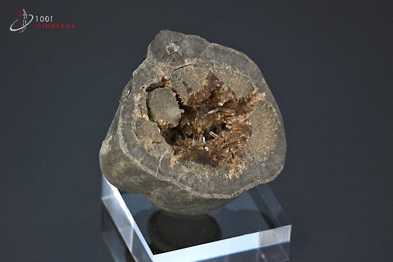 Spécimen d'une moitié de nodule de Septaria pole avec une cristallisation de Calcite.