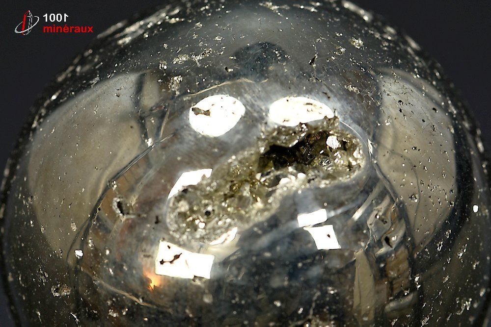 Magnifique sphère minérale en Pyrite polie destinée à la décoration ou à la collection.