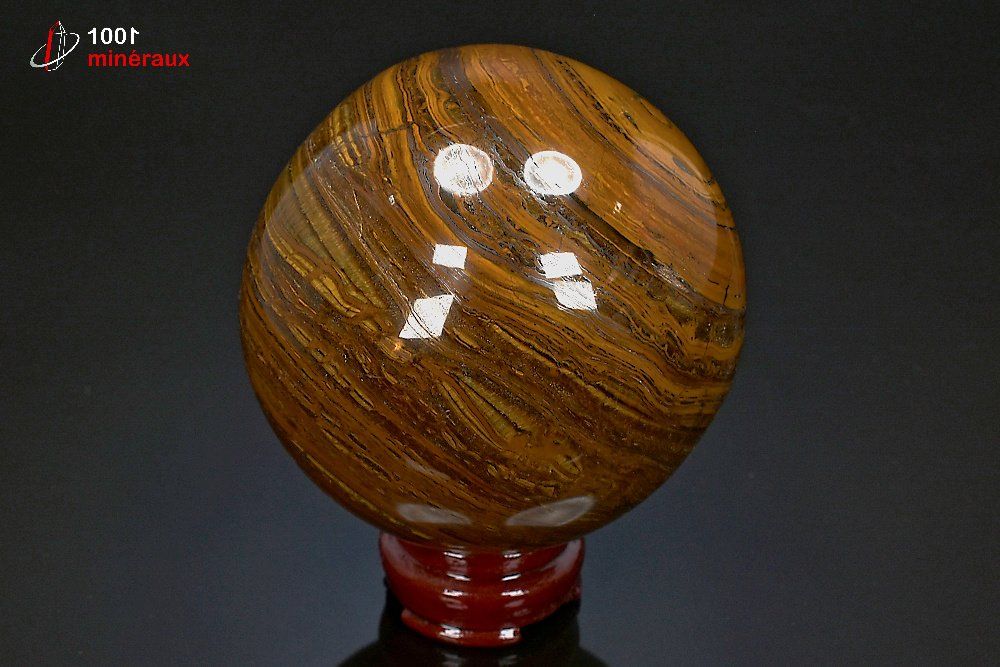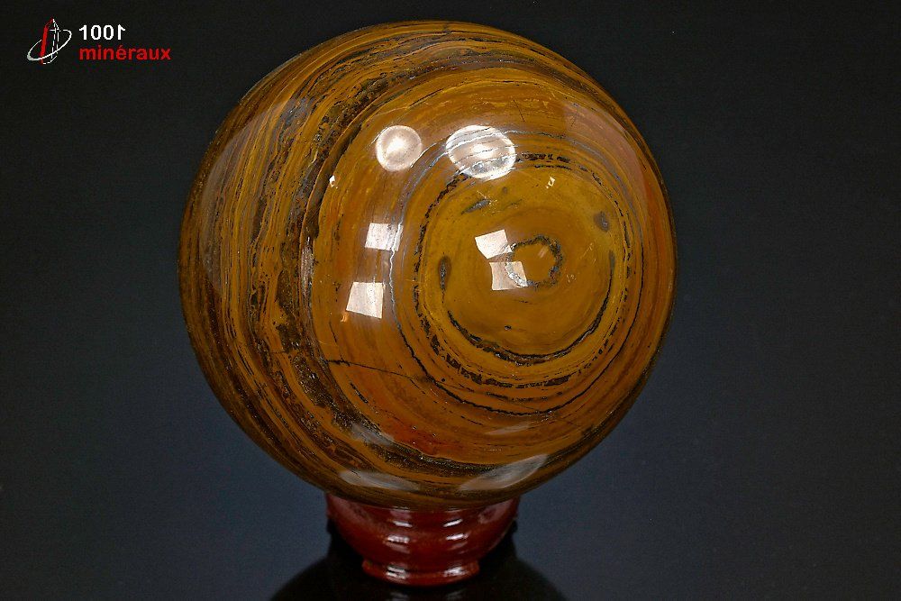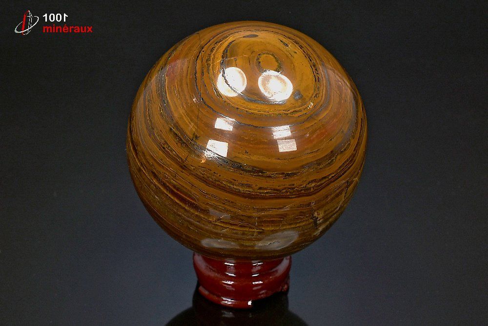 Magnifique grande sphère polie d'Oeil de tigre livrée avec socle.