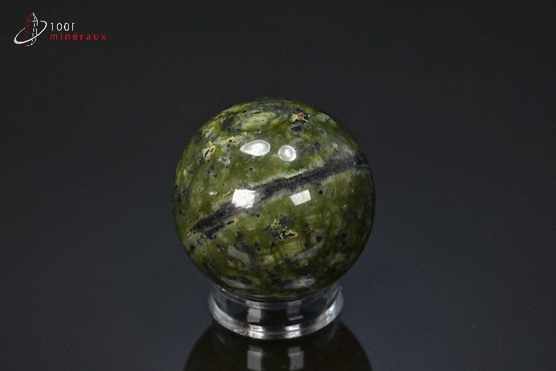 Spécimen d'une petite sphère polie de Jade néphrite, Serpentine et Hématite .