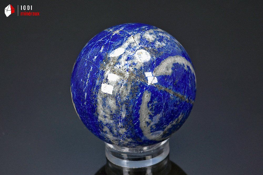 Magnifique sphère polie de Lapis Lazuli. Livrée avec socle.