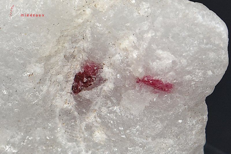 Spécimen de cristaux de Spinelle rouge sur Cipolin blanc.