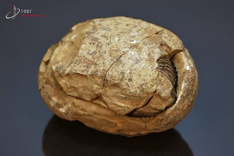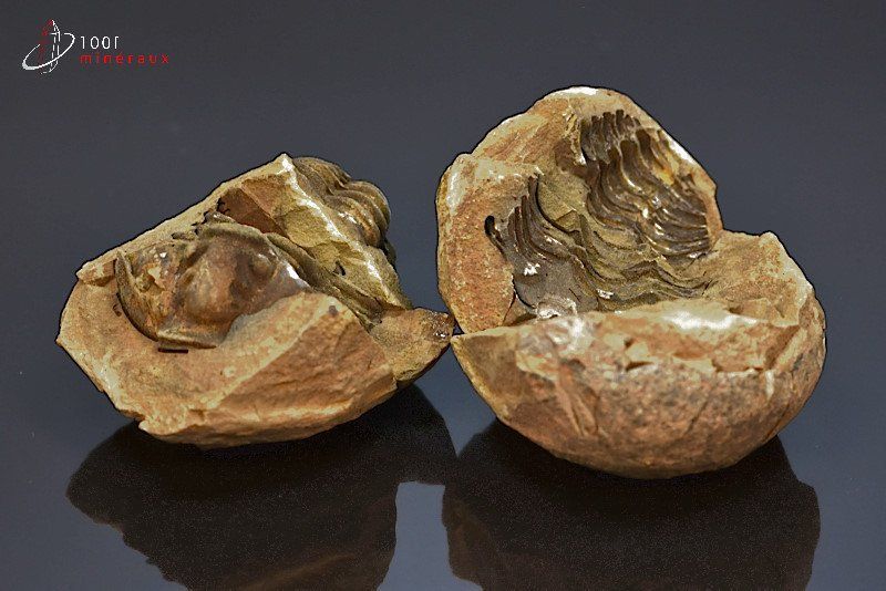 La particularité du trilobite en nodule est de découvrir une fois ce nodule partagé, le trilobite pris dans la gangue avec son empreinte en opposé.