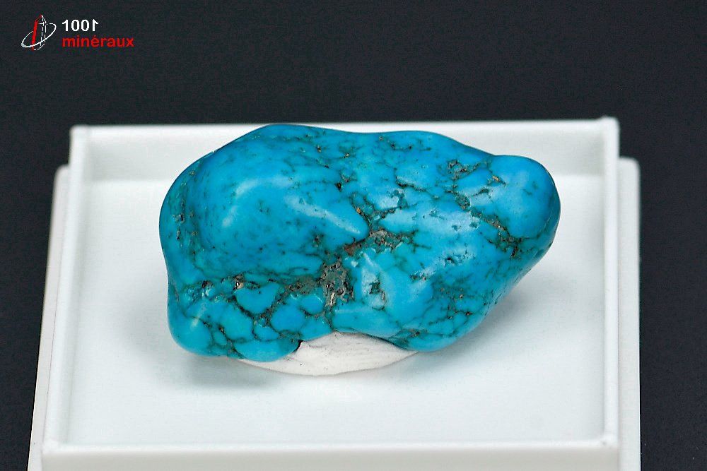 La TURQUOISE appartient au groupe des phosphates et contient du cuivre, de l'aluminium et du phosphore. La TURQUOISE se présente généralement sous une forme massive ou microcristalline avec un faible développement des cristaux. C'est une gemme fragile. Sa couleur est nuancée du bleu au vert.