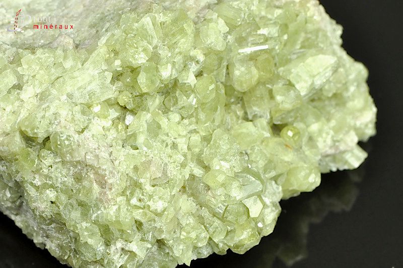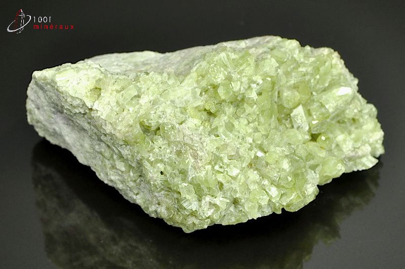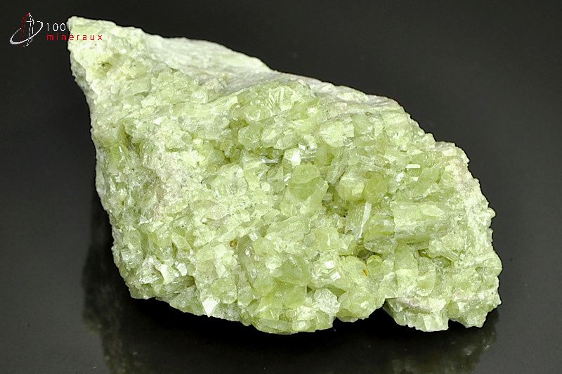 Spécimen d'une Vésuvianite présentant de nombreux cristaux prismatiques translucides vert clair.