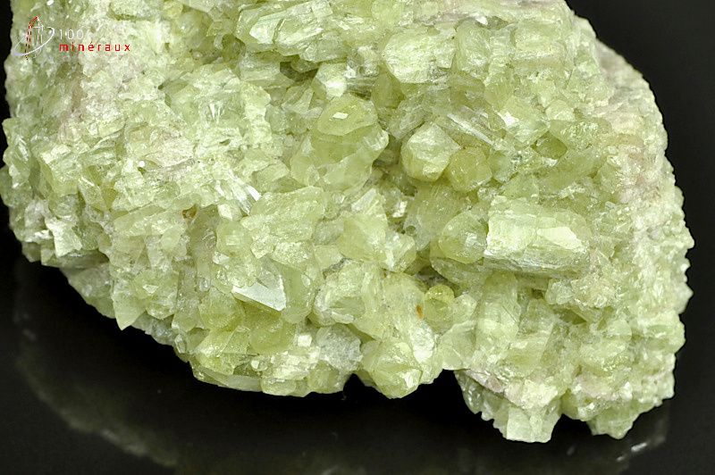 La Vésuvianite présente des cristaux prismatiques translucides de couleur généralement verte mais qui peut être aussi brune, noire, jaune ou bleu-violette.