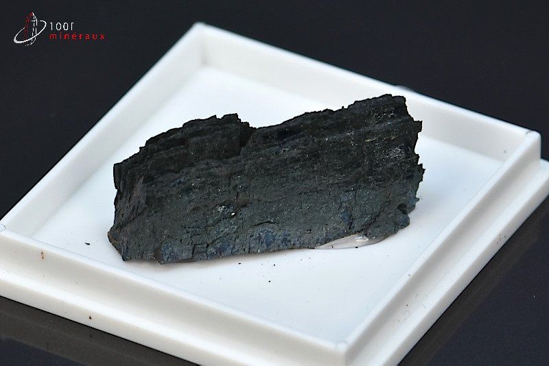 Spécimen d'un cristal lamellaire de Vivianite dont la couleur s'est modifiée en vert foncé.